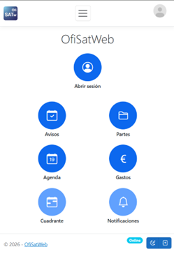 Permite recibir o crear un Aviso y convertirlo en Parte de Reparación desde Móvil o Tablet. Dispone de Agenda, mensajería entre técnicos, control de gastos y cobros.